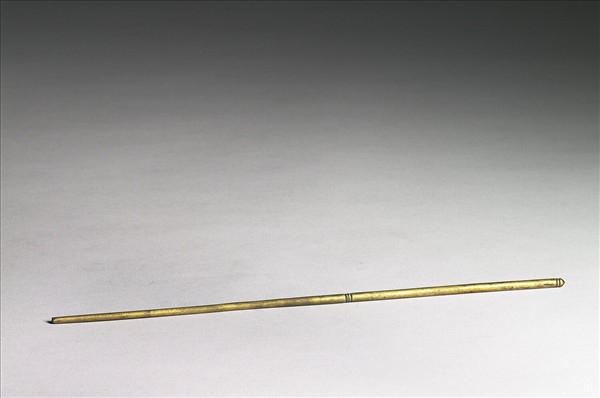 筷子一枝,器身中央與尾端各有兩道弦紋。與故銅2404為一對。