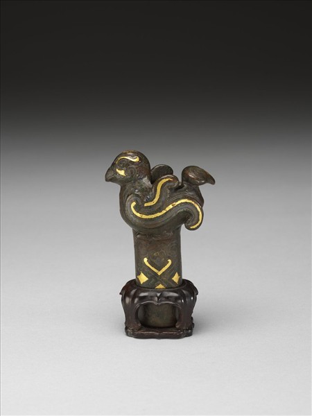 錯金銀鳥紋銅器首