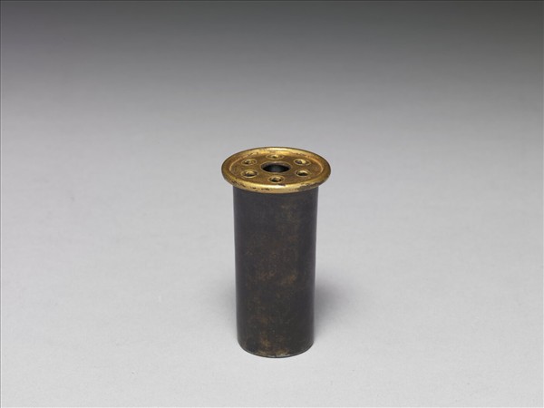 銅膽,形如管狀,口處一銅圓片,銅片直徑大於管狀器身之直徑,銅片上有七圓孔,為中央一大圓孔而周繞六小圓孔。裝於其他器物中時,其中空的器身與圓孔的固定侷限作用,便可讓其他器物帶有花插的功能,也可固定插飾於其中的花朵。