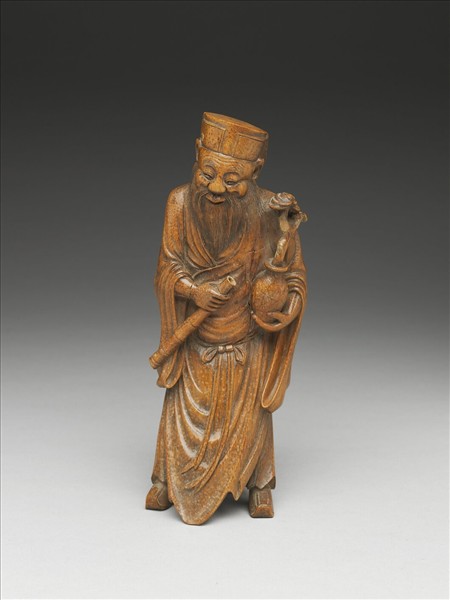 整器以竹雕為站立人像,其人戴平頂長腳帽,鬚髯長,頭側左而微笑,衣裳寬博,腰飄帶而後繫葫蘆,右手持漁鼓,左手抱一瓶,瓶中插靈芝,是為八仙中的張果老。張果老為唐代具法術之人,姓張名果,自稱生於堯時,已數百歲。常倒騎白驢。本尊張果老竹雕像,與其他七尊人物竹雕像為一組,同成八仙。