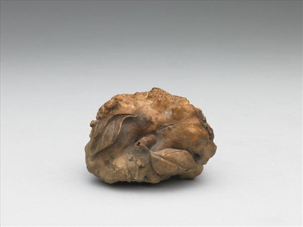 全器就樹根原形,雕琢各種瓜果之形,附枝葉。作何用途不詳,唯由其表面磨飾潤澤,推測可能是把玩之物。
