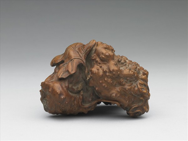 全器就樹根原形,雕琢瓜果,果實上附枝葉,造型寫實。此類器作何用途不詳,由其表面磨飾潤澤,推測可能是把玩之物。