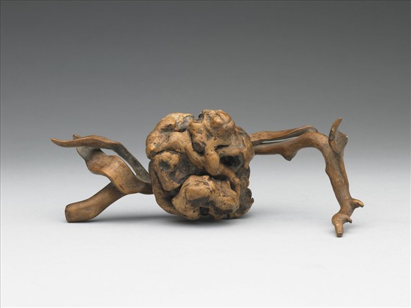 全器就樹根原形,雕琢各種瓜果、枝幹之形,表面均經磨飾潤澤,推測可能是把玩之物。