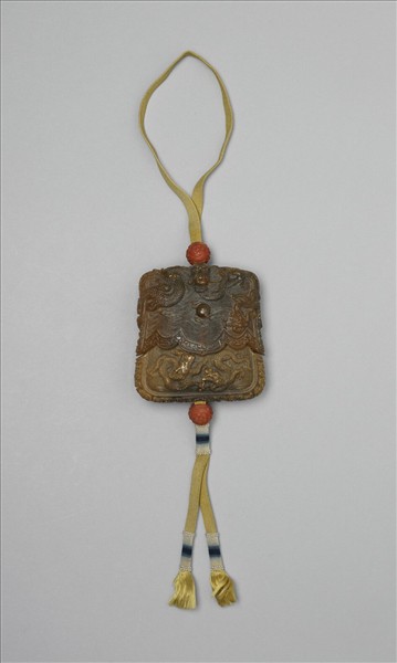 器蓋與器身通體高浮雕水波紋,其間並雕以八龍戲珠紋:正背兩面紋飾相同,上端各雕一正龍,其下有一火珠,右方則有一小行龍側趨,下方各有兩行龍上仰,龍首皆朝向火珠。兩側邊飾以蔓草紋。上半器即蓋,蓋沿作蓮瓣狀,雕以折帶形細夔紋。蓋與身每面二龍,形成蒼龍教子圖。通常,用犀角雕刻成品大多製成角盃,很少製成火鐮盒的情形。這件清宮中的火鐮盒卻以犀角雕成,全器關闔時近斧形,中空,上窄下略闊,周緣薄,中間鼓起,上下可分開,重疊處甚深。上下端各有長方形孔,以便穿繫帉帶。明黃色帉帶上、下端另有雕花珊瑚珠束之。