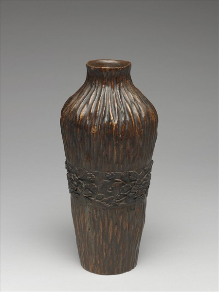 以整塊沉香,取材料本身的紋理雕做而成,僅於瓶身腰部淺浮雕纏枝牡丹紋,有舊錦袱,為乾清宮所收藏,見於光緒二年(1876)《時做上等次等陳設檔》,應為乾隆時所做。