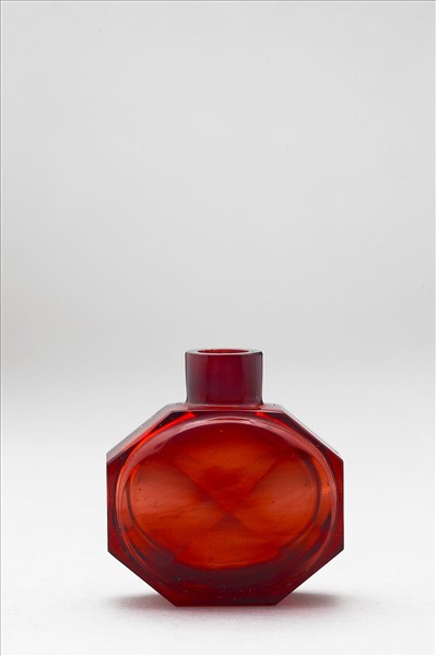 紅色玻璃八角鼻煙壺