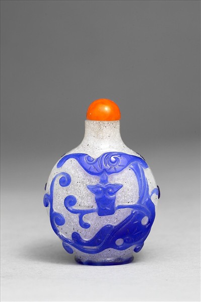 霏雪地套藍玻璃蟠螭鼻煙壺
