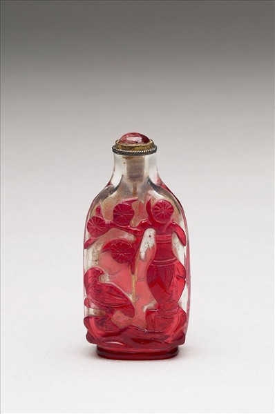 透明地套紅玻璃鼻煙壺