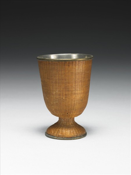 整器如杯形,圓口微撇,深直壁略下斂,足外撇。器裏以錫為胎骨,外壁編附竹片,並於口沿處與足緣處用銅釦一圈將兩種材質密接,使外表看起來整器有如竹編而成。平底,底外露錫胎,中央有凹痕一圈。