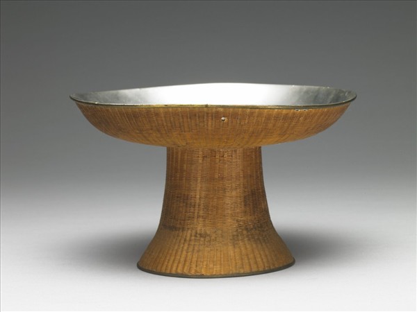 整器仿青銅器之豆形,敞口,深弧壁下斂,高足外撇,器裏以錫為胎骨,外壁編附竹片,並於口沿處與足緣處用銅釦一圈將兩種材質密接,使外表看起來整器有如一竹編之豆形器。底外露平底錫胎,中央有凹痕一圈。