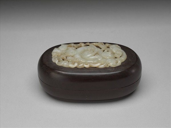 紫檀嵌玉蟠螭橢圓盒