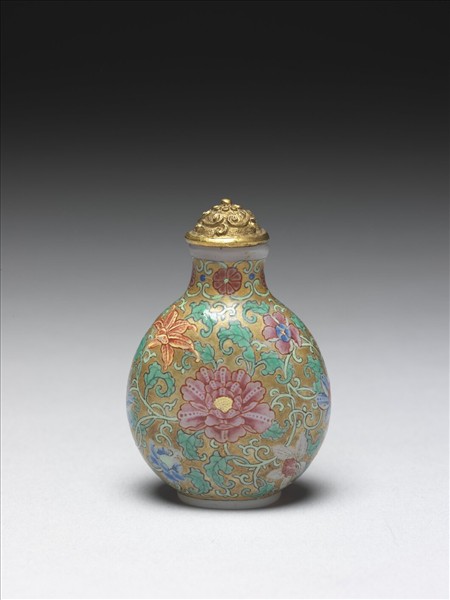 玻璃胎畫琺瑯金地纏枝花卉鼻煙壺