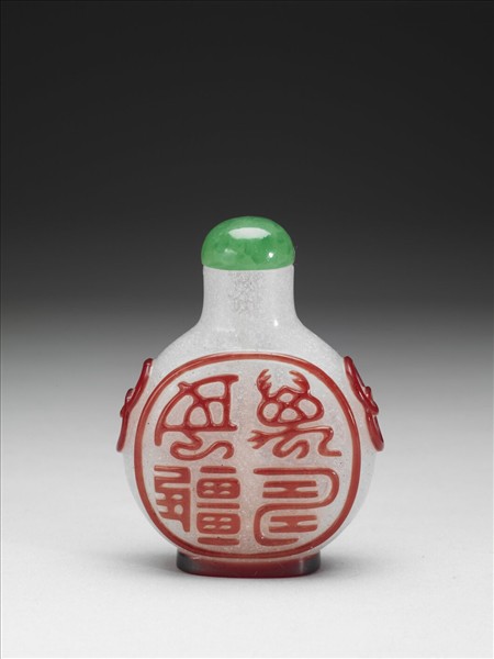 霏雪地套紅玻璃篆字鼻煙壺
