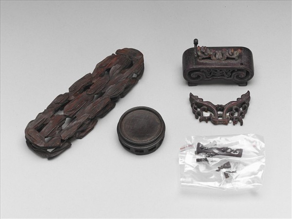 1.橢圓木座長12公分 寬3.2公分 高1.4公分 圓木座徑3.7公分 高1.5公分 一件破損無法量尺寸
