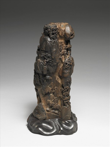 以整塊沉香木雕製而成。是以西漢著名文學家司馬相如所作〈上林賦〉為題材,記錄皇家苑囿上林苑之富麗,與天子射獵場面之壯闊。比對清宮舊藏傳仇英〈上林圖卷〉的故事長卷可看出,此件採通景式構圖,將〈上林圖卷〉中最精彩的「乘輦」、「騎馬觀獵」及「登台觀海」等內容,依序巧妙錯落於圓柱狀的沉香木上。以浮雕及鏤雕技法, 雕山林樹石、人物服飾、動物體態與建築裝飾,為材質珍貴、雕工細膩的陳設器。於乾隆十年(1745)二月配袱及木匣後,入乾清宮次等收藏。