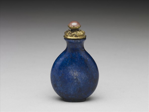 青金石橢圓扁瓶。帶嵌碧璽頂銅蓋與玳瑁匙。
