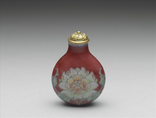 玻璃胎畫琺瑯紅地牡丹鼻煙壺