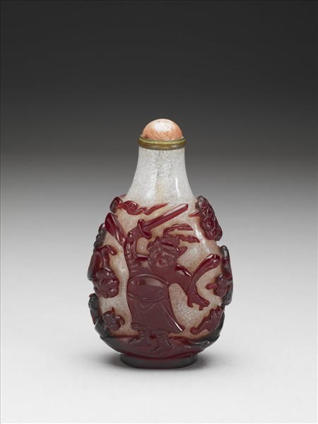 霏雪地套紅玻璃鍾馗鼻煙壺