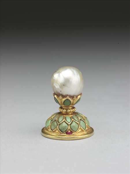 皇帝吉服是一般慶典、重要或正式場合時的禮服,皇帝冬、夏吉服冠與朝冠形制相近,惟冠頂為滿花金座上銜大珍珠一。皇后吉服冠頂用東珠,皇貴妃、貴妃皆同。此底座為金嵌綠松石仰覆花瓣紋,東珠較圓。