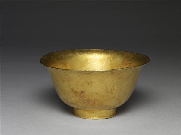 金碗,撇口,深壁,圈足。外壁光素無紋。