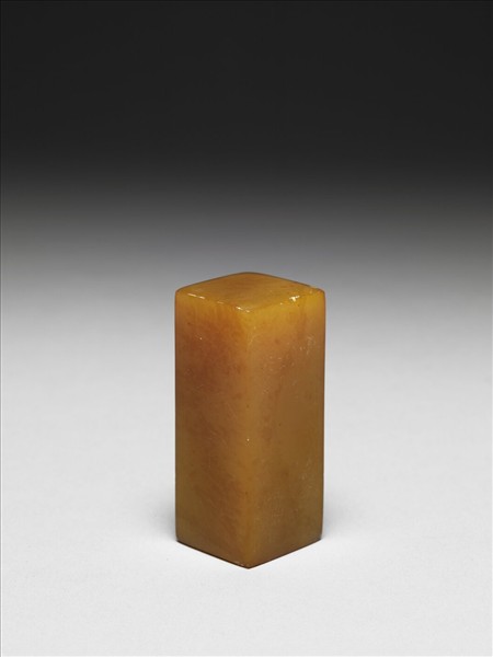 壽山石,黃色,色調溫厚,長方體,印面正方未刻,外表光素無紋。