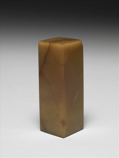 壽山石,黃色,色調沉厚,長方體,印面正方未刻,外表光素無紋。