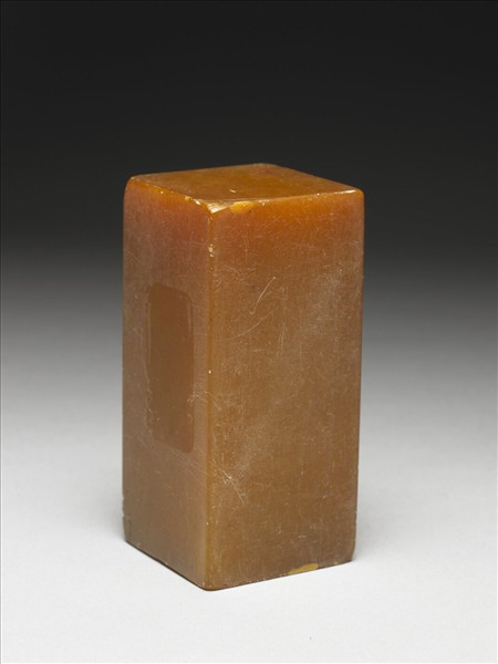 壽山石,黃色,色沉厚,長方體,印面長方,未刻。
