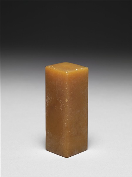 壽山石,黃色,色沉厚,長方體,光素無紋,印面正方,未刻。