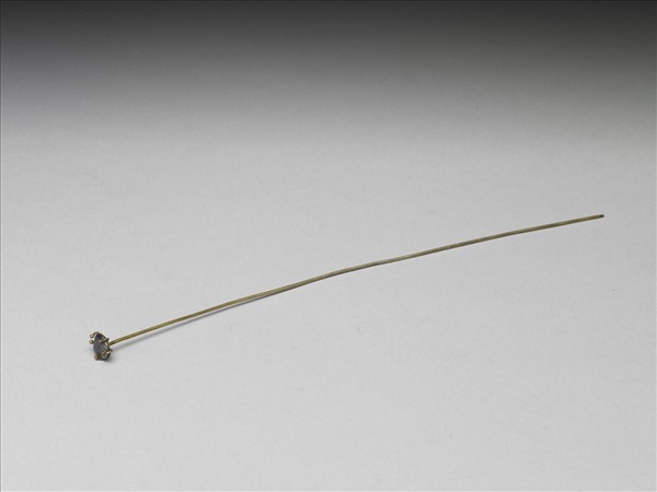 藍寶石簪,簪首以爪鑲法單鑲一顆藍寶石,細圓鋌光素,尾端尖。