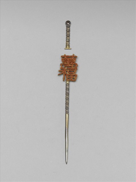 銀鍍金嵌珊瑚珠萬福耳挖簪