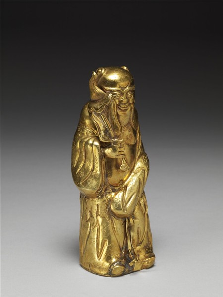 雙髮髻、天庭飽滿、壽眉鬚髯、披鐫飾祥雲之袍衫,袒露前面上身,腰帶繫在腹下,穿方頭鞋,右手持扇。身體中空,底略凹、中央鏤古錢紋而周有四孔。傳後漢咸陽人,姓鍾離名權,號正陽子。官歷漢、魏、晉三朝,唐末入終南山正陽洞修練,道教遵其為正陽帝君。