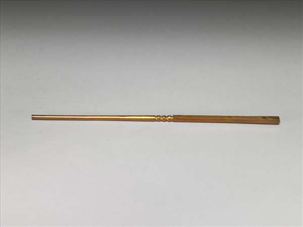 金質,前端為圓錐形,中段有三圓珠狀裝飾,後段為四方柱形,與故雜2527為一對。