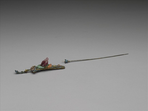 銀鍍金點翠嵌寶石仙人過海耳挖簪