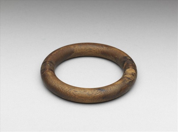以整塊茄楠木雕成,圓潤飽滿,光素無紋,事實上佩戴就能散發香氣,顯現材質的特性。