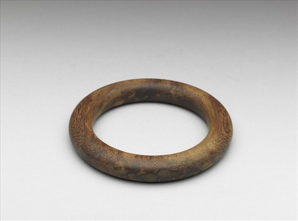 以整塊茄楠木雕成,圓潤飽滿,光素無紋,事實上佩戴就能散發香氣,顯現材質的特性。