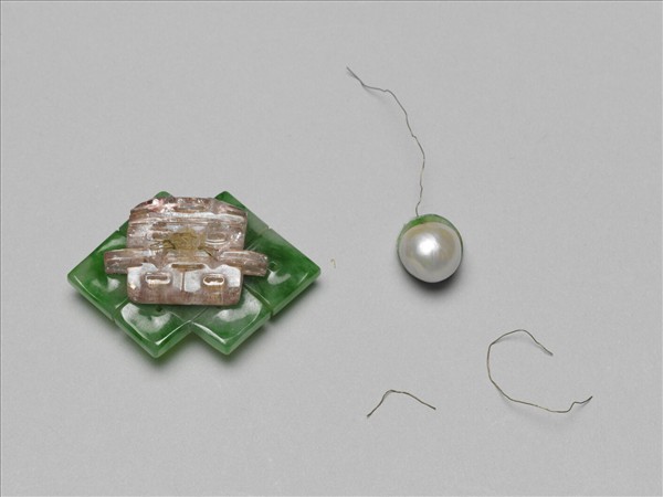 翠玉盤長碧璽雙喜嵌珠帽花