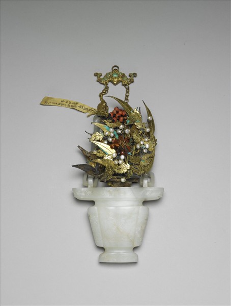 玉嵌珠寶花籃飾件