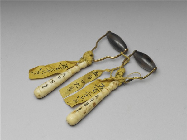 象牙柄太平車,柄一端接金屬架,金屬架上有橄欖形瑪瑙,可以來回滾動。象牙柄有「太平萬年」單行篆字。太平車為按摩器具。故雜3206-3207為一組。