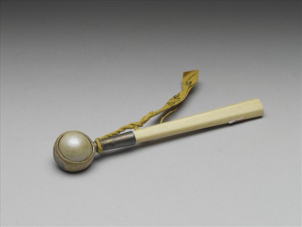 象牙柄太平車,柄一端接金屬環,金屬環箍定珍珠一顆,用於按摩,清代稱這一類的按摩器具為太平車。