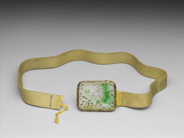 銀鍍金嵌翠玉帶扣