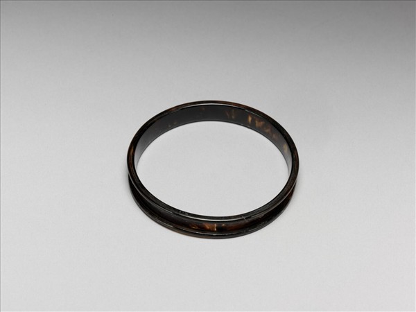 玳瑁手鐲胎,呈橢圓形,外側上下緣出稜,內側表面平整,光素無紋。此手鐲胎無任何雕飾,表面可見玳瑁背甲之天然花紋與色澤。故雜3273-3274成對。