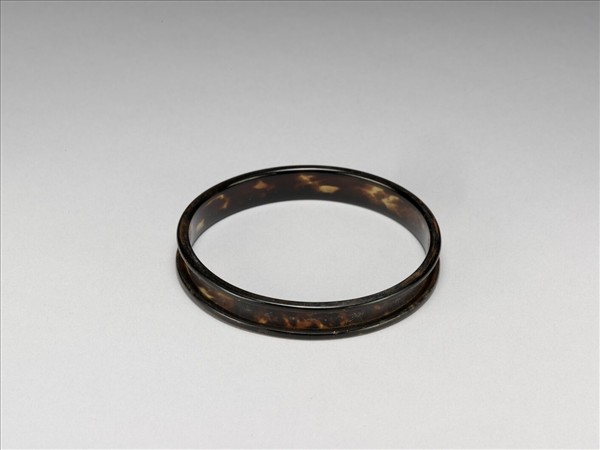 玳瑁手鐲胎,呈橢圓形,外側上下緣出稜,內側表面平整,光素無紋。此手鐲胎未有任何雕飾,表面可見玳瑁背甲之天然花紋與色澤。故雜3273-3274成對。