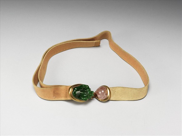銅鍍金嵌翠玉碧璽帶扣腰帶