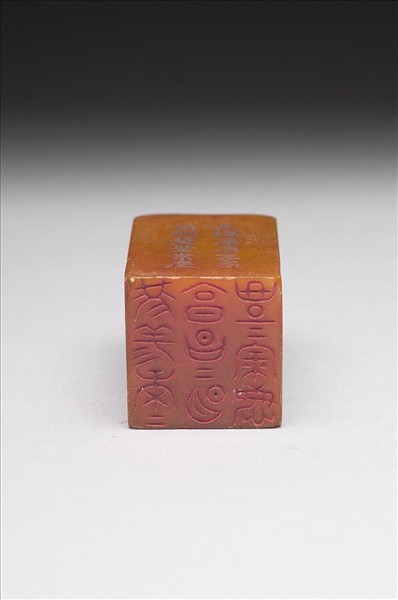 壽山石章,印面正方,色黃。此印蓋屬「璿璣仙藻」套印中的其中一方,整套印共八十四方。該套印上冊均先將「長祥康崇慶享豐明昌」九字順次排成三直行,使成正方形九宮格狀,再依照邊款所揭示之規則、字體刻為印文。此印即如邊款「古文,亦皇帝史倉頡之所作也」、「右蟬聯順文四句」所述,印面採皇帝史倉頡所創「古文」,陰刻右蟬聯順文「長祥康康享昌昌明豐豐崇慶」十二字。