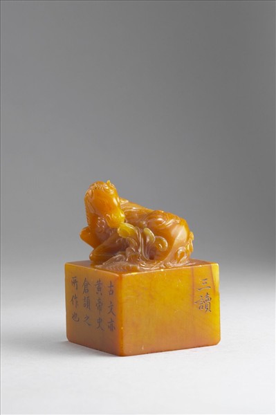 清高宗對於古文字十分感興趣,即位初即積極整理內府所藏銅印、玉印,加以考訂,同時命大臣搜集文獻及古篆,製定三十二體滿漢文古篆,乾隆初期即用以抄寫〈盛京賦〉,乾隆晚年又增加十體,組合而成四十二體篆,如院藏〈虹文薈古〉玉印即以此諸篆刻成,而這套田黃印則選擇其中的九種篆體,兩套印章的印文都是回文,也都整理成盒,鈐印編輯成冊,形成一定的規模。其中這套〈鴛錦雲章〉當中挑選增刻三十二體篆所無者為:古文、詛楚文、秦璽篆和漢印篆。 田黃為壽山石中,質地最細膩、潤澤的印材,這九件印石脂潤瑩潔,具半透明感,或隱見紅、褐筋、蘿蔔絲紋,材質優異,尺寸不小,甚為難得,各以不同的異獸為鈕,磨礱圓潤,刻工不凡。每方印文均以「循連環」三字排列三組,合成九字印文,各方作不同書體,各以不同字起首作成「回文」,是文人文字遊戲的一種表現。檢視印文的寫法及線條,雖說各體均自有名稱、典故來源,且各有特點,然而寫法總不出以籀篆、古文為體的組合,而線條則是在收筆在起筆處作輕重變化,收尾處加飾造型,或在線條中間加圓或點等。整體而言,線條力道十分平穩順暢,布局平均乾淨,具有相同的風格面貌。 印文的內容更是別具用心。「循連環」三字,從字面意義上看,是指依循一定的法則,不斷的循環,正呼應九方印章「回文」的排列組合方式,另一方面,「循連環」又指三王的道統,「周書曰:三王之統,若循連環,周而復始,窮則反本。」(《太平御覽》卷76),道家煉丹術的經典進一步衍伸謂:「無平不陂,道之自然,變易更盛,消息相應,始復終坤,如循連環,帝王承御,千載常存。」(道家煉丹術的創始經典為(東漢)魏伯陽《周易參同契》,因原書不存,此引《四庫全書》認為諸註本最足以採信的(後蜀)彭曉,《周易參同契通真義》為例),也就是說帝王若依循乾坤逆順之道,則可以歷千秋而常存。因此,印譜一開端即言:「截黃鐘之管,律呂旋移,還金鼎之丹,陰陽妙合。」指涉其治此組篆印的成就猶如定十二律的規範,而印文內容則言其治國乃順乾坤之道,又言:「宛轉三周,適協箕疇之用,縱橫九變,如觀韶舞之成,」一方面指回文排列的變化,另一方面更抽象呼應帝王成就「九疇」成功的治國範例,達成舜韶樂之盡善盡美的境界。這套鴛錦雲章不僅技藝遒麗,氣象莊嚴,更反映高宗對其在政治與文化上的自我評價。(故雜003488–故雜003496)