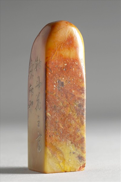 十一件印章(故雜3497-故雜3507),原共盛於剔紅漆盒內,石色各不同,均屬青田石系。各以不同字體,聯文為周敦頤〈愛蓮說〉全文。邊款各有與印文相同的行草文,又分刻「壽承氏印」、「文彭仿古」、「三橋學篆」、「三橋」、「文彭」、「文彭篆」、「嘉靖九年(1530),歲次庚寅,春王正月既望,作于徐氏之東雅堂。長洲文彭。」「周頤公之文為最,而三橋之篆又稱古健,得此印全副,摩挲竟月,不知門外軟紅塵十丈也,因援筆記之。陳維崧。」「勵杜訥同觀」、「鄂善書記」、「半畝龔賢」、「余見廣文之印,曷止數百枚,求全文則十無一全,今得此十一枚,乃所作〈愛蓮說〉一篇,未闕一枚,因裝成一篋,時時觀玩,是以識之。七十四叟理齋藏寶」等字樣。原漆盒內猶有乾隆四十九年(1784)御題時句。本組印章的印文可相連成一篇文章,亦係閒章的一種。傳世及著錄的文彭印章,少見有聯文者,唯乾隆御製時文集中所見清宮收藏的文彭聯文印卻有十組左右。本組〈愛蓮說〉聯文印以北宋周敦頤的一篇膾炙人口的文章為主題,並有陳維崧(1626-1682)、勵杜訥(1628-1703)、龔賢(1619-1689)、鄂善、葛元煦等清代收藏家款字,但印文與邊款均與文氏風格略異,年款亦存疑。