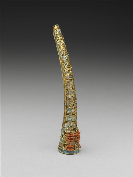 點翠鏤空雙囍嵌珊瑚珠指甲套