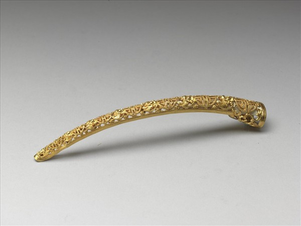 指甲套可以保護長長的指甲,戴上製作精美的指甲套也有裝飾美化的作用,同時也只有不需勞動工作的貴族才有可能戴著指甲套。指甲套以金、銀質為多,或鏤空各式文樣:團壽、花卉、幾何等,又以鑲嵌或燒藍加彩的方式,加以裝飾,由於指甲套呈長而彎曲的弓型,側面線條嫵媚,是滿人十分特別的裝飾。