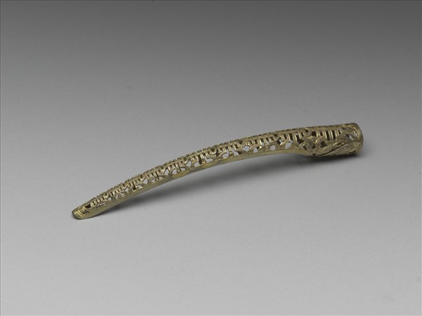 弓形,從基部到指尖漸漸變細,壽字紋從指尖逐漸變小,背部作空格式。此器與故雜3802為一對。