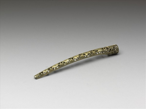 弓形,從基部到指尖漸漸變細,面作梅花紋,紋飾從指尖逐漸變小,背部作空格式。此器與故雜3841為一對。
